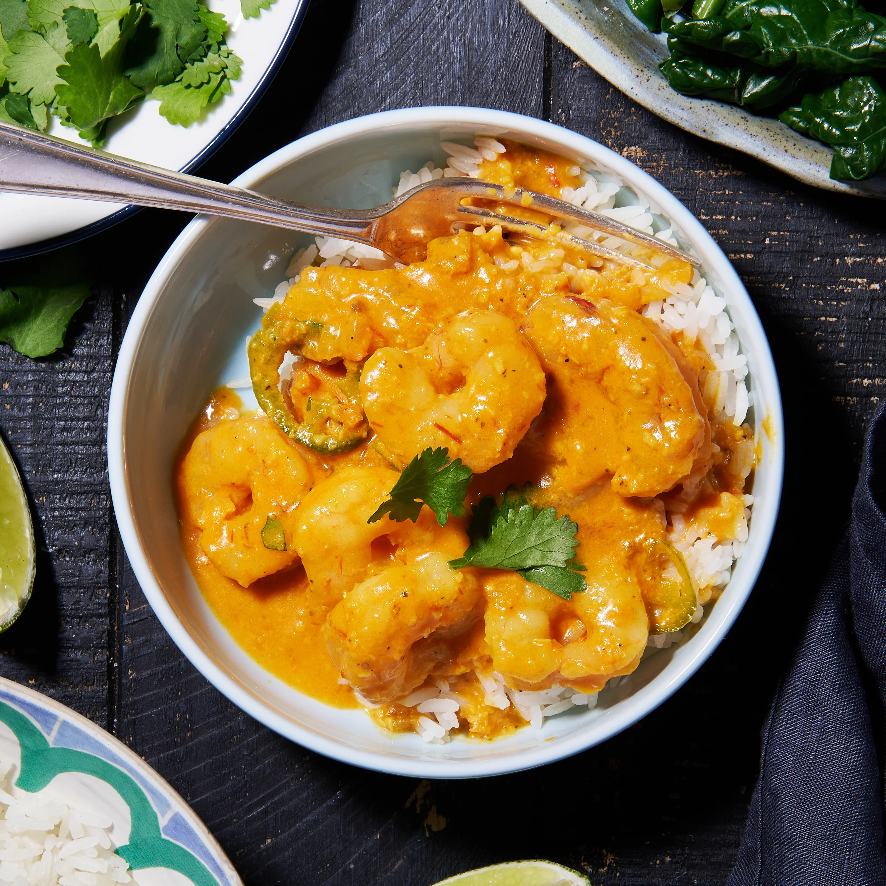 Our take on a Southern Indian recipe, this is a saucy little curry, with a lip-smacking base blending tomato, tamarind and coconut, a little green chilli (add more to fire up) and uncooked prawns that gently cook through as the curry heats. Dish up over coconut rice, with some warm flatbread to scoop up any last remnants of sauce.